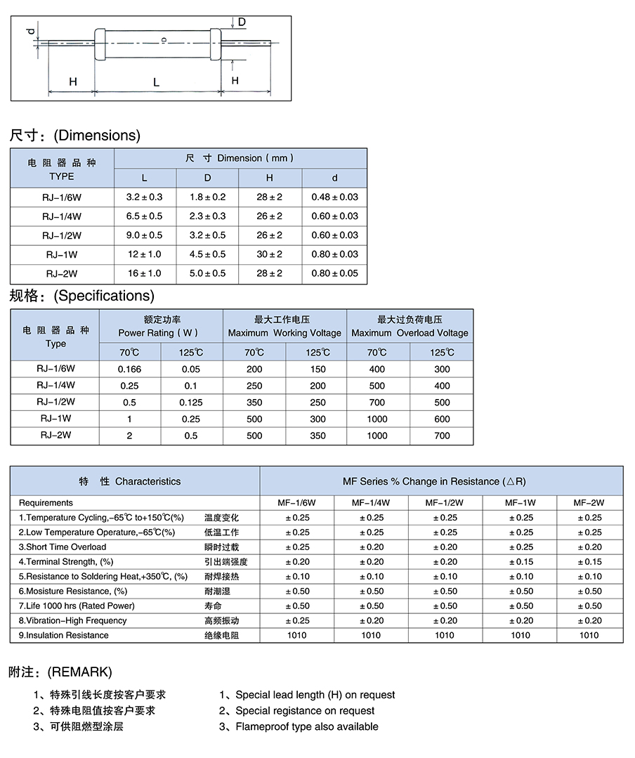 Standard Type:1/6W,1/4W,1/2W,1W,2W